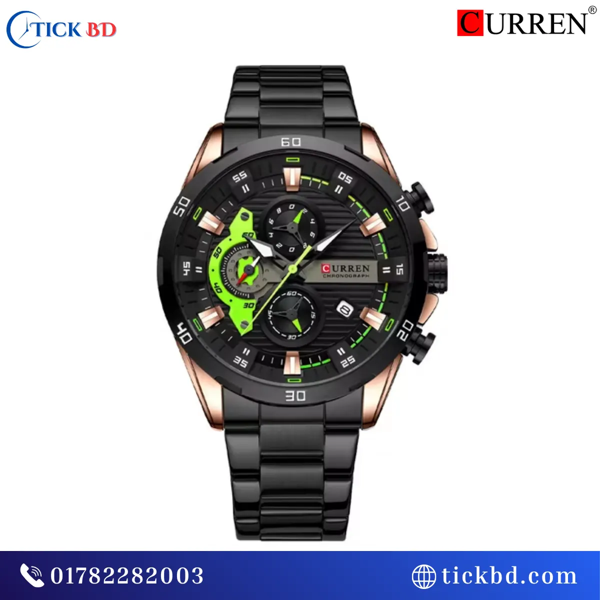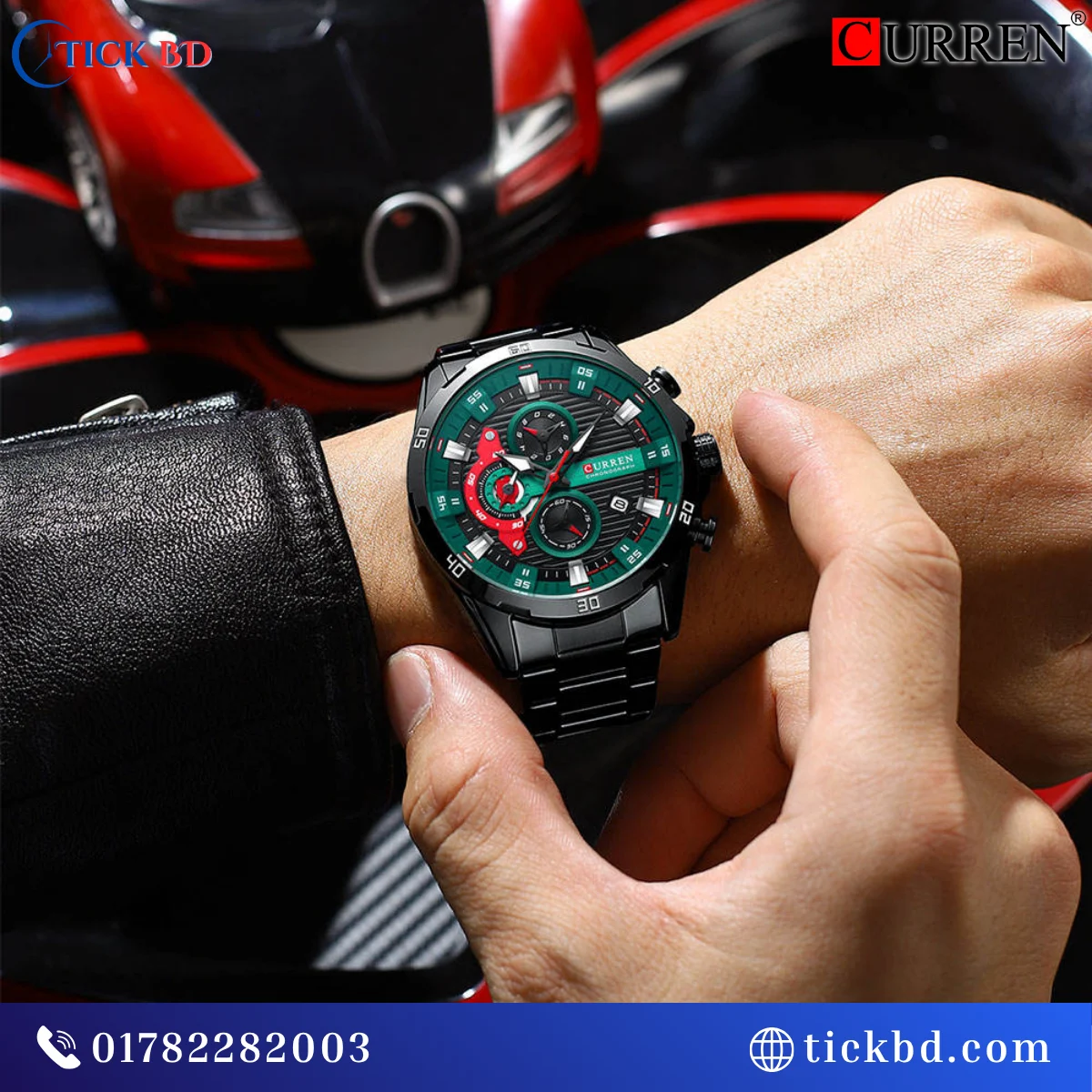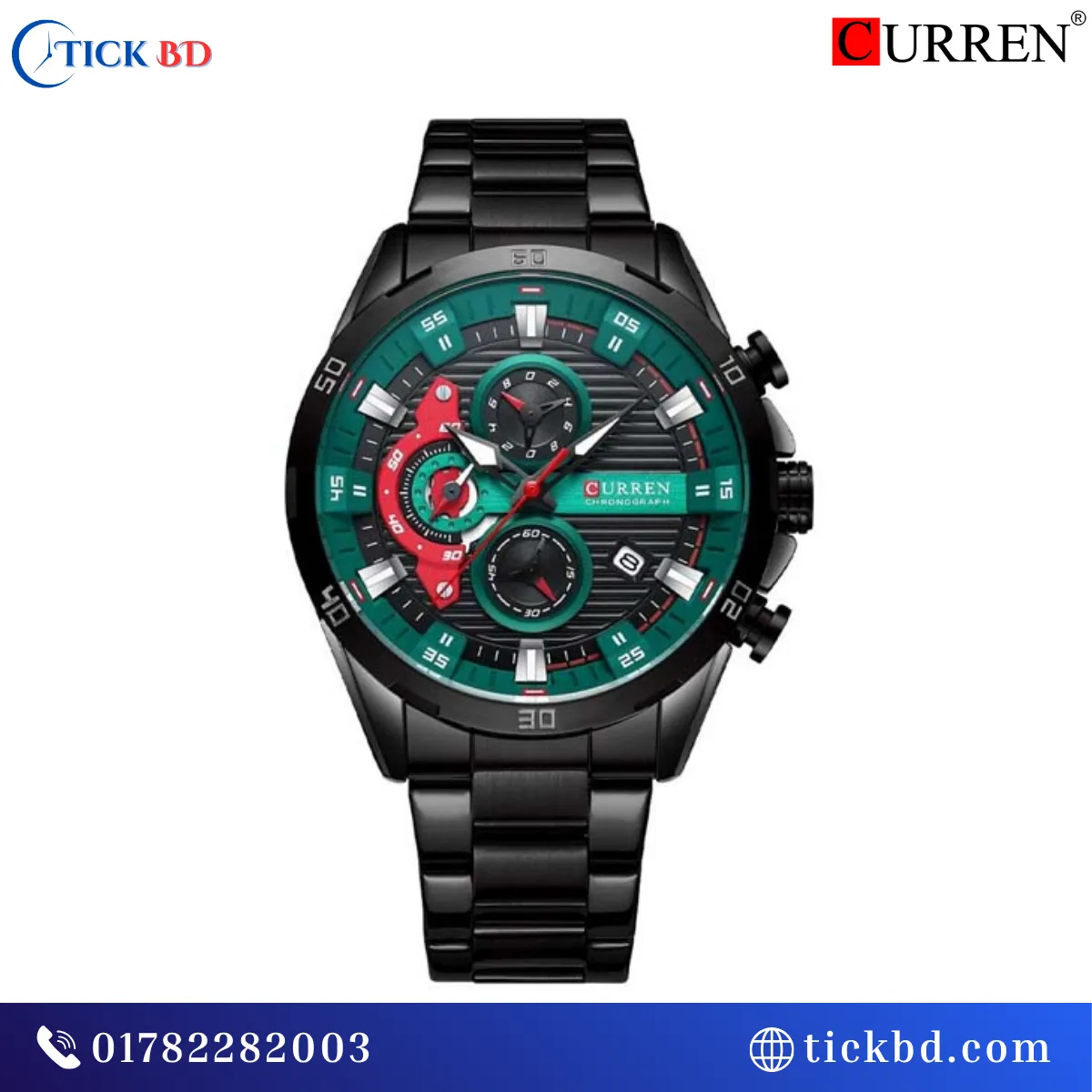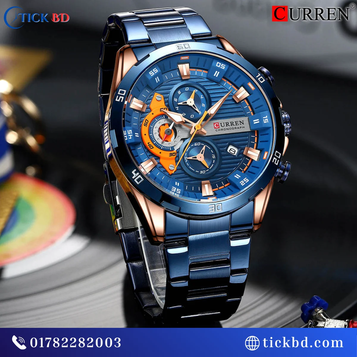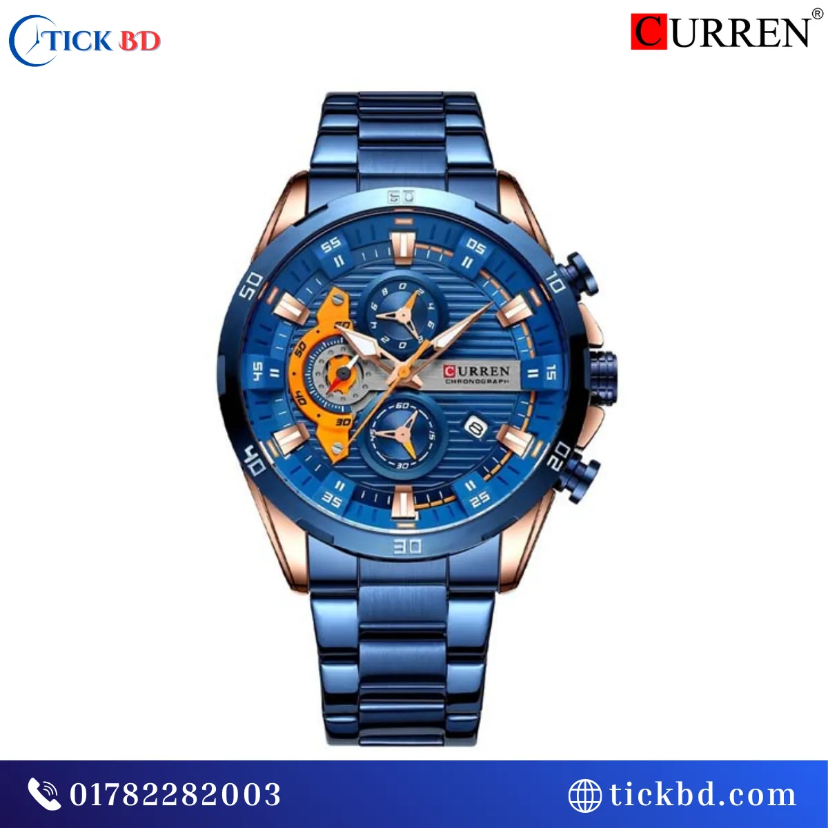 Curren 8402 Watch স্টাইলিশ ৪৭মিমি বড় ডায়াল ও প্রিমিয়াম লুক | নির্ভুল জাপানিজ কোয়ার্টজ মুভমেন্ট | ক্রোনোগ্রাফ ফিচার ও ডেট ডিসপ্লে | স্ক্র্যাচ-প্রতিরোধী হার্ডলেক্স গ্লাস | মজবুত স্টেইনলেস স্টিল ব্যান্ড | লুমিনাস হাত ও মার্কার | ৩ATM পানি প্রতিরোধ ক্ষমতা