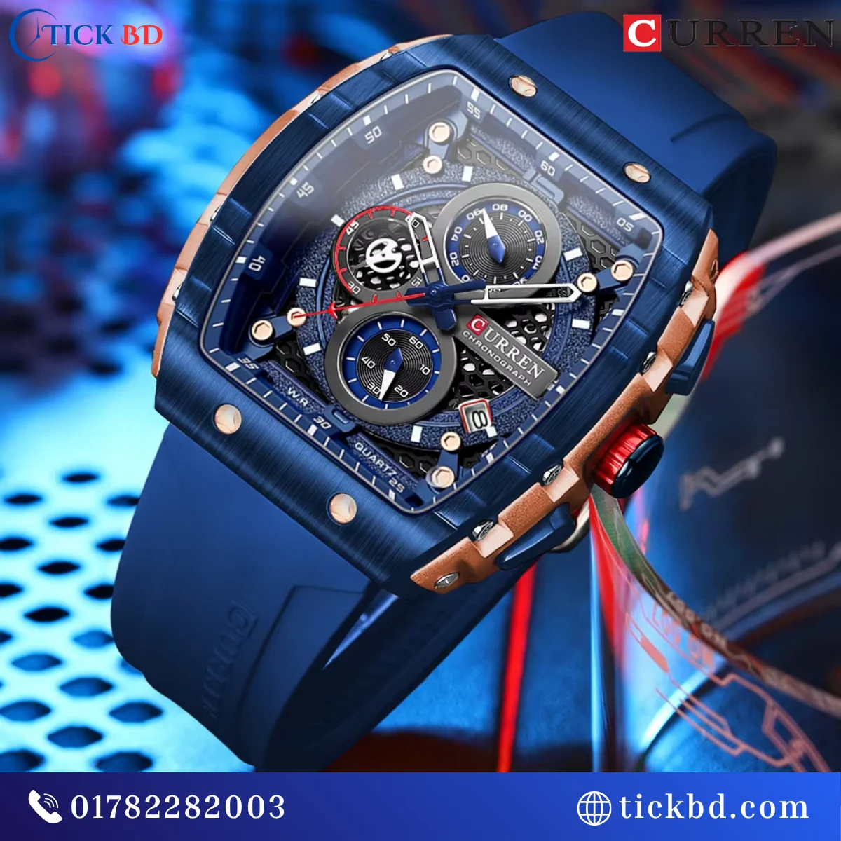 CURREN 8442 Men’s Sports Chronograph Watch – Large Rectangle Japanese Quartz | Best Price in Bangladesh