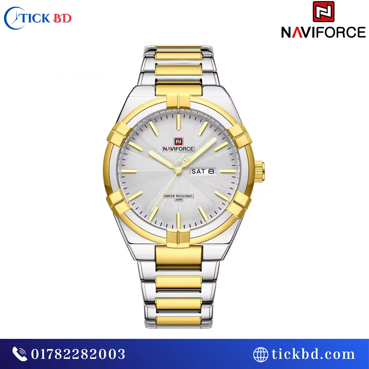Naviforce NF9218 একটি স্টাইলিশ, টেকসই, এবং কিফায়ত মূল্যের ঘড়ি। দৈনন্দিন ব্যবহারে উপযোগী, লুমিনাস হ্যান্ডসহ সহজে সময় দেখা যায় এবং বিভিন্ন রঙে পাওয়া যায়।